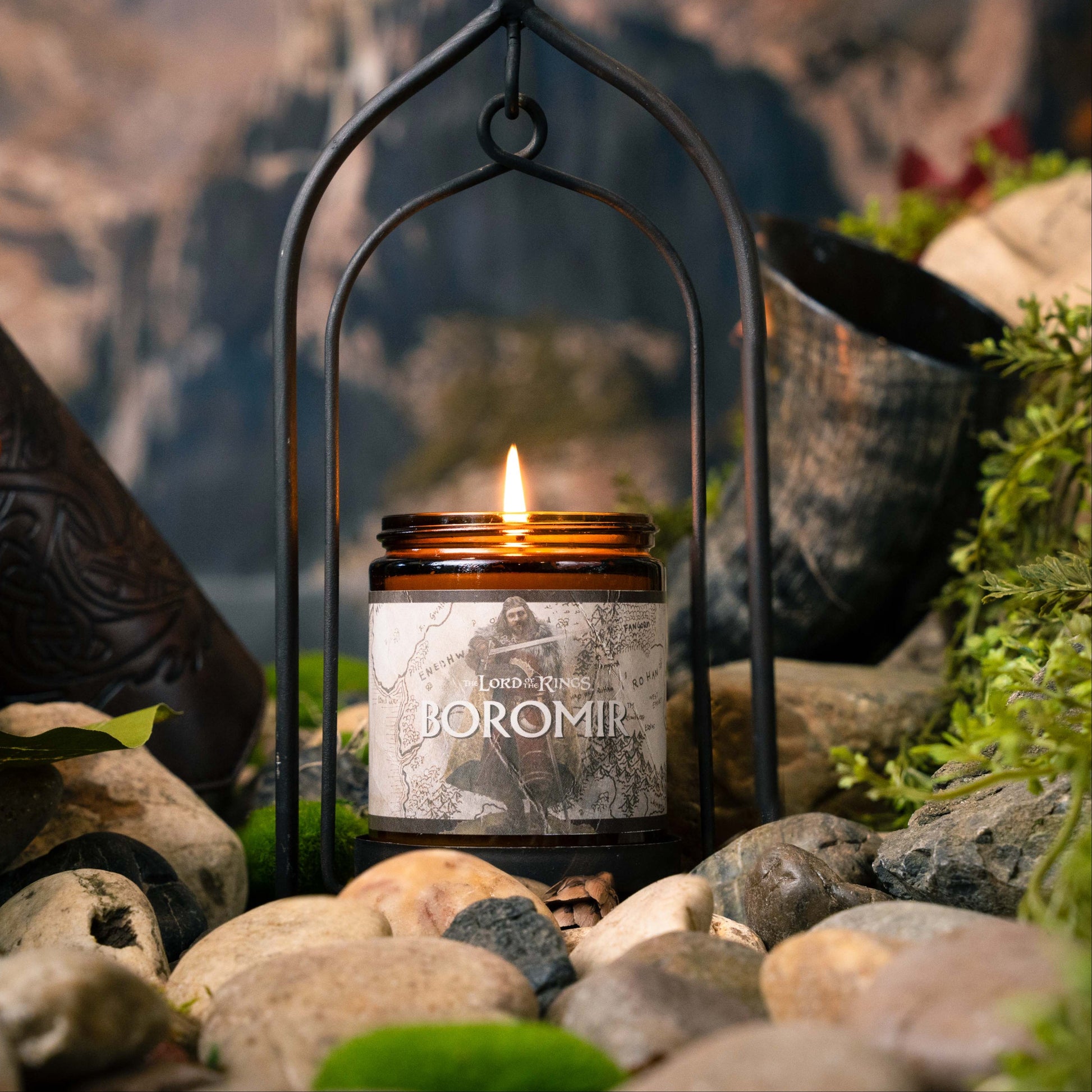 Mood: The proud son of Gondor stands resolute among towering evergreens, his shield gleaming as valor flows through his veins.