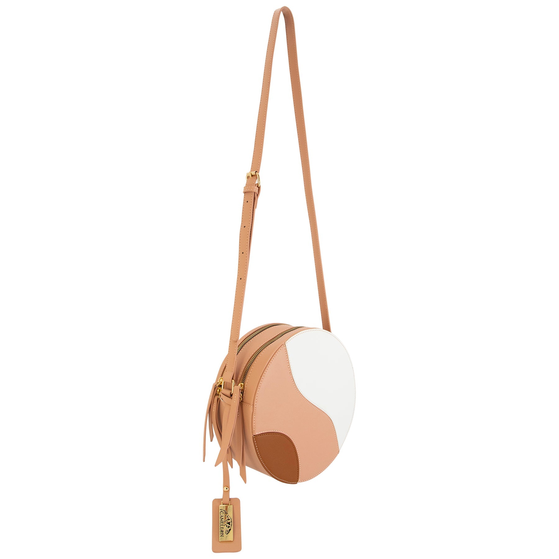 Our Clara crossbody bag is a must-have fashion accessory for busy lives. Whether you’re popping out to walk the dog, meeting friends for coffee, or just heading for a quick grocery shopping, it’s the ideal bag to stash small valuables and keep them close at hand. It features a round shape with double zippers on top to access the compartments easily. A zipped pocket at the interior keeps small items secure.