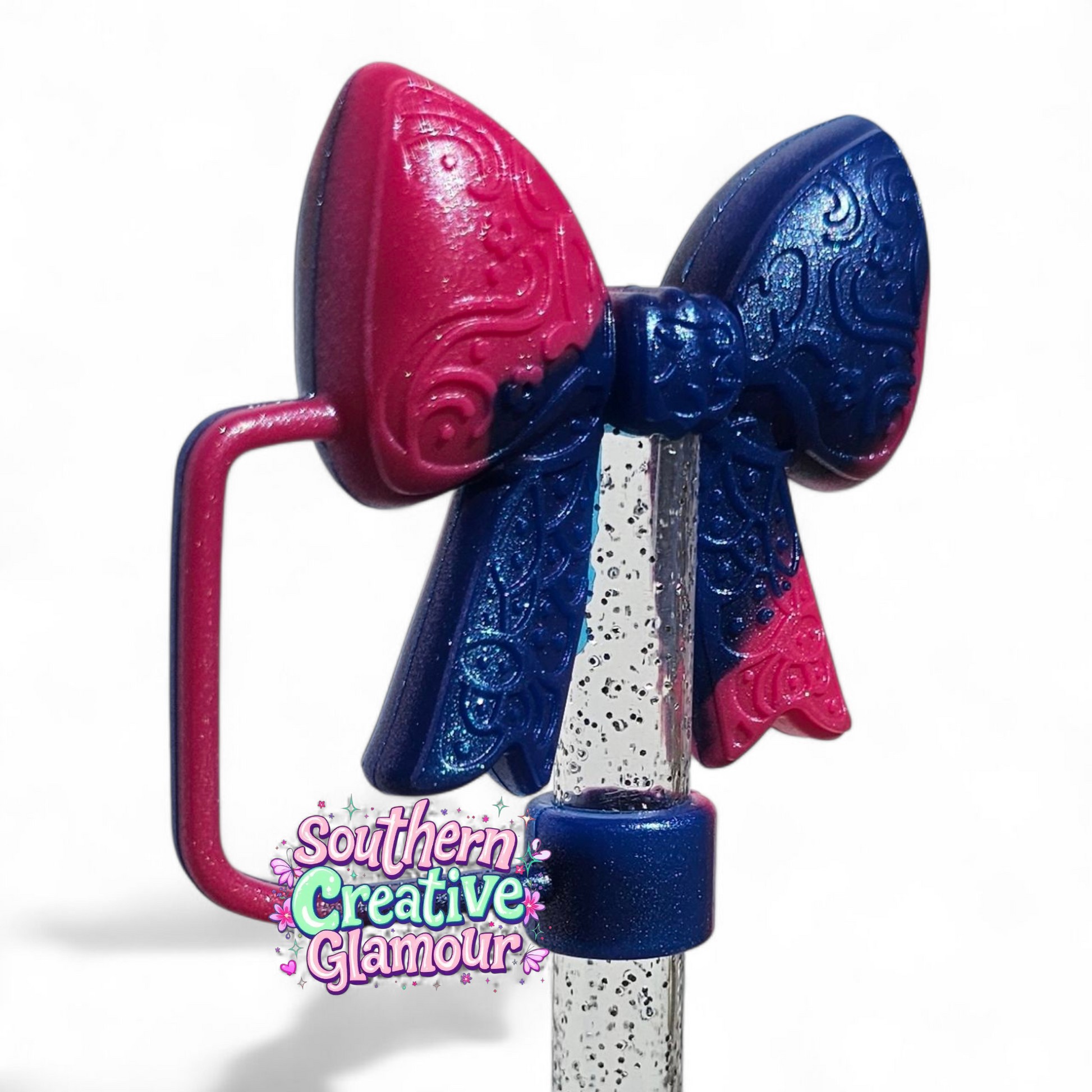 Berry Truffle Pink Shimmer 3D Silicone Paisley Ribbon Bow Straw Topper | 3D Bow Straw Cover | Bow Straw Cap
