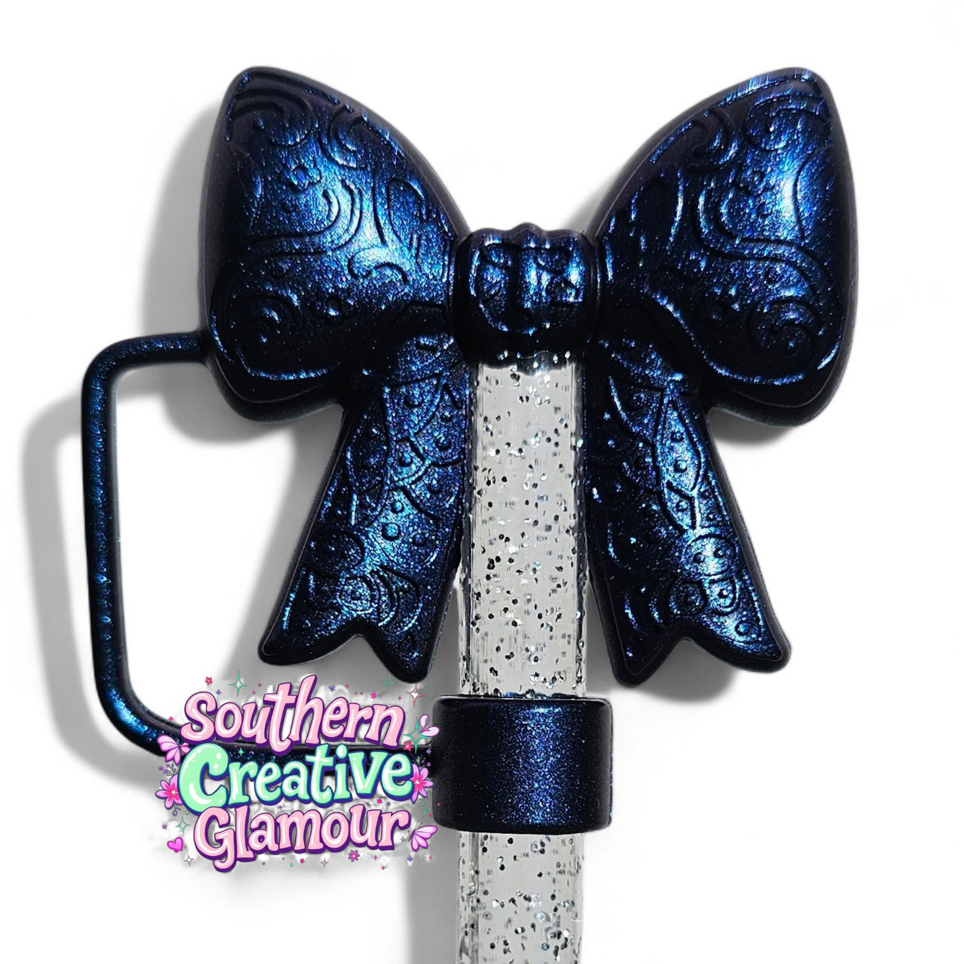Paisley Princess 3D Bow Silicone 10mm Straw Topper | Metallic Blue Shimmer
